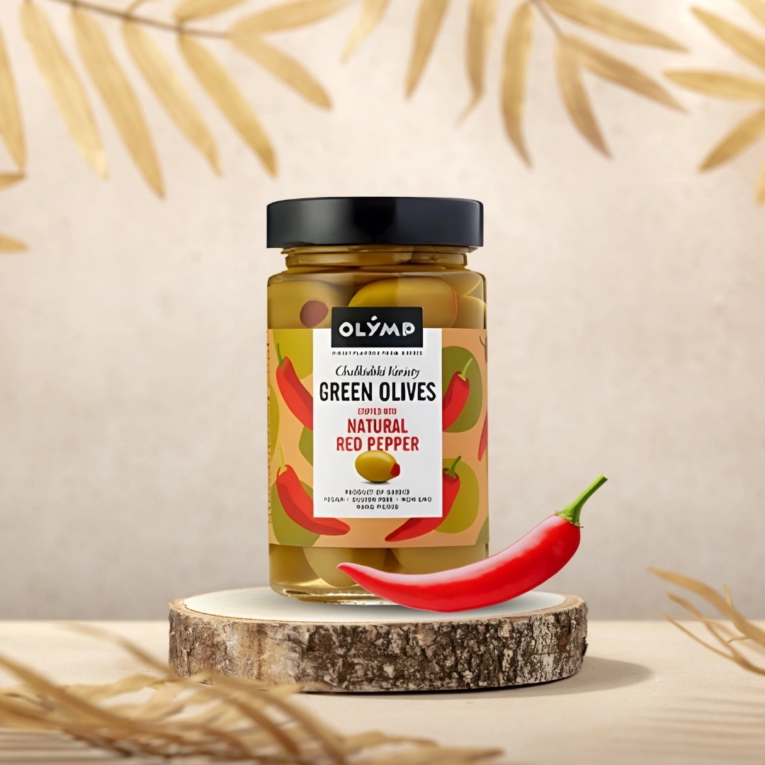 Savor the taste of premium green olives infused with bold flavors. Perfect for enhancing your meals or enjoying as an appetizer, Olymp offers a delightful combination of Mediterranean flavors and quality. Ideal for those seeking a healthy, flavorful addition to their dining experience.